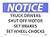 - Header "NOTICE" and Legend "TRUCK DRIVERS SHUT OFF MOTOR SET BRAKES SET WHEEL CHOCKS"