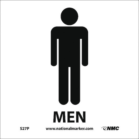 NMC S27P Graphic See Sign, Legend "MEN", 7" Length x 7" Height, Pressure Sensitive Vinyl, Black on White