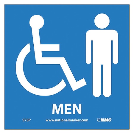NMC S73P Graphic See Sign, Legend "MEN", 7" Length x 7" Height, Pressure Sensitive Vinyl, White on Blue