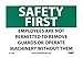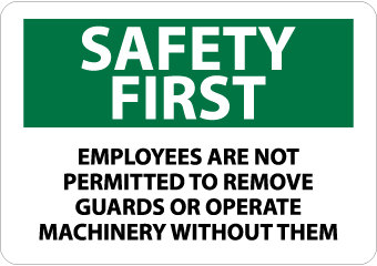 | Feature | Header "SAFETY FIRST" and legend "EMPLOYEES ARE NOT PERMITTED TO REMOVE GUARDS OR OPERATE MACHINERY WITHOUT THEM" |