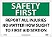 Report All Injuries No Matter How Slight To First Aid Station Sign, SF171AB