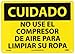 - Header "CUIDADO" and legend "NO USE EL COMPRESOR DE AIRE PARA LIMPIAR SU ROPA"