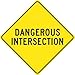 NMC TM209K Traffic Sign, Legend "DANGEROUS INTERSECTION", 24" Length x 24" Height, High Intensity Prismatic Reflective Aluminum 0.080, Black On Yellow