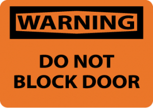 | Feature | Header "WARNING" and legend "DO NOT BLOCK DOOR" |