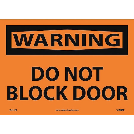 NMC W415PB OSHA Sign, Legend "WARNING - DO NOT BLOCK DOOR", 14" Length x 10" Height, Pressure Sensitive Vinyl, Black on Orange
