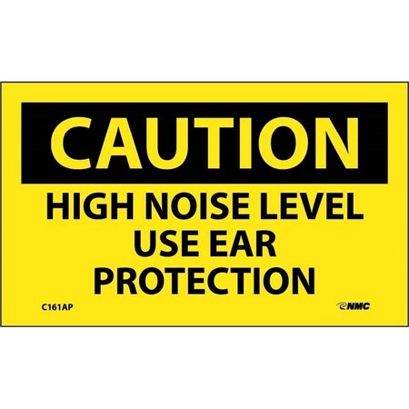 NMC C161AP OSHA Sign, Legend "CAUTION - HIGH NOISE LEVEL USE EAR PROTECTION", 5" Length x 3" Height, Pressure Sensitive Vinyl, Black on Yellow (Pack of 5)