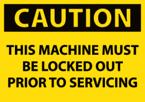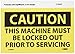 | Feature | Header "CAUTION" and legend "THIS MACHINE MUST BE LOCKED OUT PRIOR TO SERVICING" |