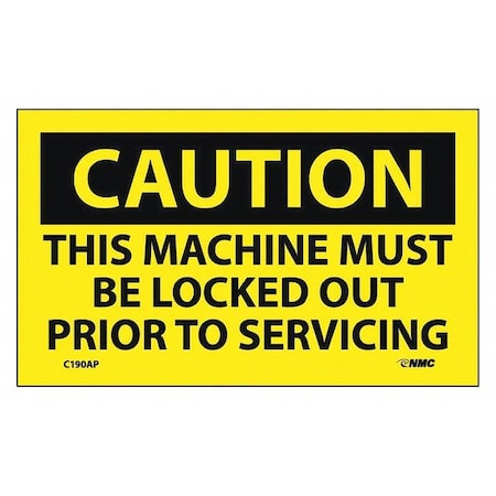 NMC C190AP OSHA Sign, Legend "CAUTION - THIS MACHINE MUST BE LOCKED OUT PRIOR TO SERVICING", 5" Length x 3" Height, Pressure Sensitive Vinyl, Black on Yellow (Pack of 5)