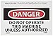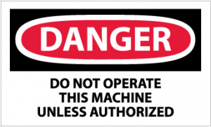 | Feature | Header "DANGER" and legend "DO NOT OPERATE THIS MACHINE UNLESS AUTHORIZED" |