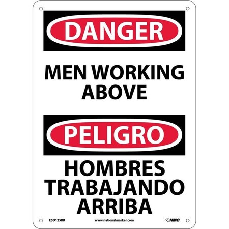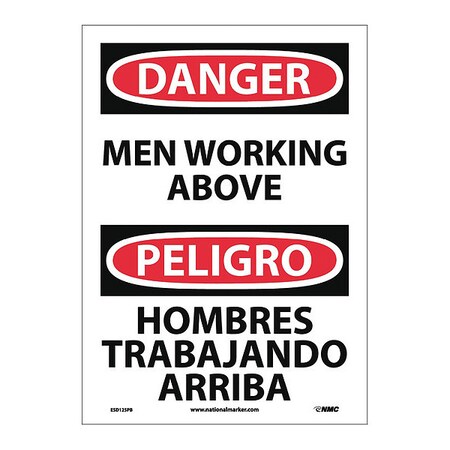 NMC ESD125PB Bilingual OSHA Sign, Legend "DANGER - MEN WORKING ABOVE", 10" Length x 14" Height, Pressure Sensitive Vinyl, Black/Red on White