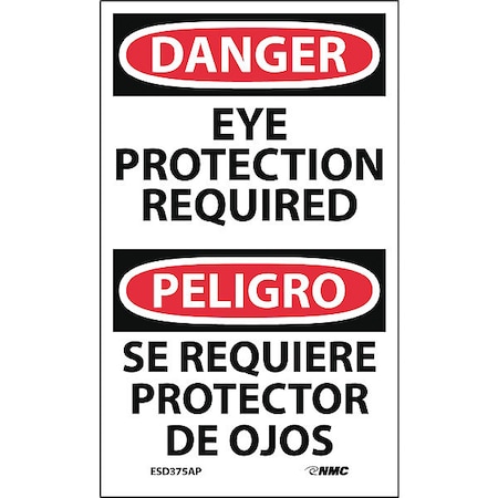 NMC ESD375AP Bilingual OSHA Sign, Legend "DANGER - EYE PROTECTION REQUIRED", 3" Length x 5" Height, Pressure Sensitive Vinyl, Black/Red on White (Pack of 5)