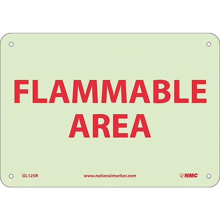 NMC GL125R Restricted Area Sign, Legend "FLAMMABLE AREA", 10" Length x 7" Height, Glow Rigid, Red on White