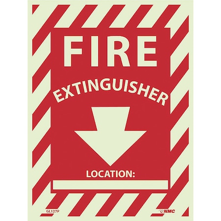NMC GL127P Fire Sign, Legend "FIRE EXTINGUISHER LOCATION:" with Graphic, 9" Length x 12" Height, Glow Polyester, Red on White
