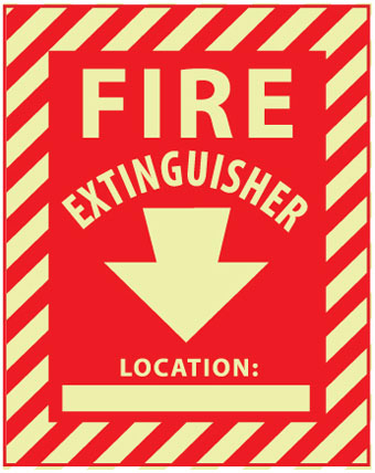 NMC - National Marker Company FIRE, FIRE EXTINGUISHER LOCATION: ____, 12X9, RIGID PLASTICGLOW Fire Signs The location of flammable substances, fire alarms, hoses, extinguishers, blankets, and evacuation exits and routes must be clearly marked throughout your facility to not only prevent a fire, but also help ensure your employees' safety.