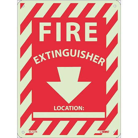 NMC GL127R Fire Sign, Legend "FIRE EXTINGUISHER LOCATION:" with Graphic, 9" Length x 12" Height, Glow Rigid, Red on White