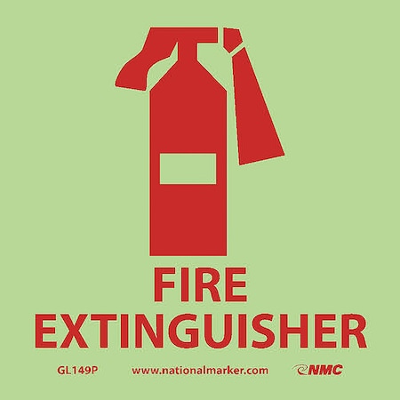 NMC GL149P Fire Sign, Legend "FIRE EXTINGUISHER" with Graphic, 7" Length x 7" Height, Glow Polyester, Red on White