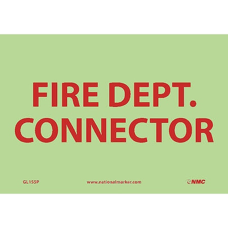 NMC GL155P Safety Sign, Legend "FIRE DEPT. CONNECTOR", 10" Length x 7" Height, Glow Polyester, Red on Yellow