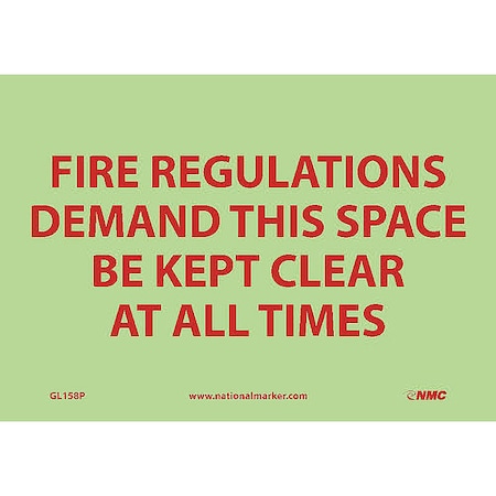 NMC GL158P Restricted Area Sign, Legend "FIRE REGULATIONS DEMAND THIS SPACE BE KEPT CLEAR AT ALL TIMES", 10" Length x 7" Height, Pressure Sensitive Vinyl, Red on Yellow