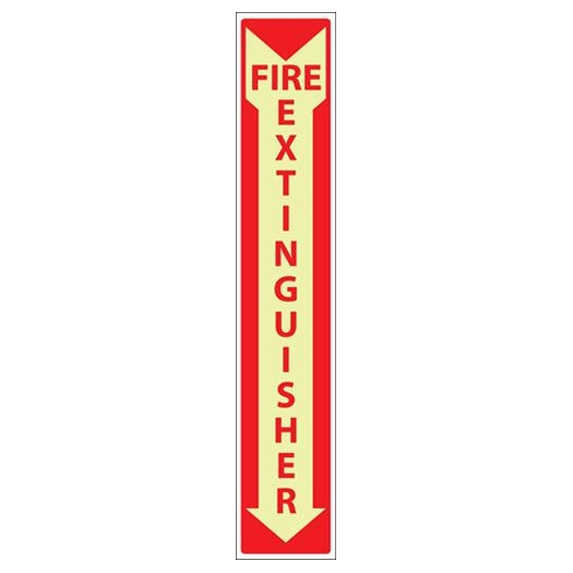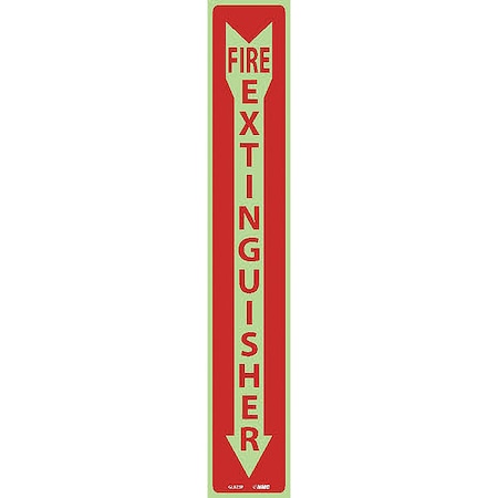 NMC GL173P FIRE EXTINGUISHER Sign - 4 in. x 24 in. Glow Vinyl Fire Safety Sign with Arrow, Yellow Glow on Red