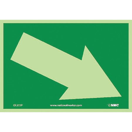 NMC GL322P Diagonal Down Right Arrow Sign – 10 in. x 7 in. 6 Hour Glow Polyester Exit Sign with Yellow on Glow Green, Right Arrow Graphic