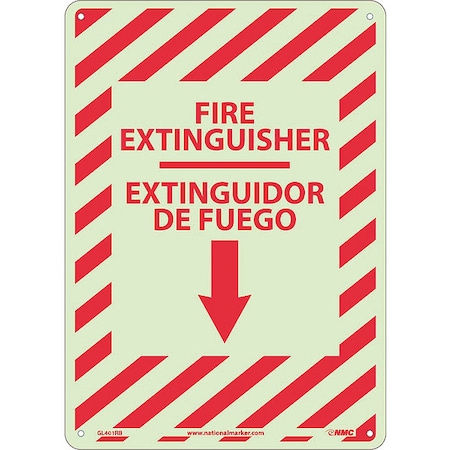 NMC - National Marker Company FIRE EXTINGUISHER, DOWN ARROW, BILINGUAL 14X10, GLO RIGID PLASTIC Fire Signs The location of flammable substances, fire alarms, hoses, extinguishers, blankets, and evacuation exits and routes must be clearly marked throughout your facility to not only prevent a fire, but also help ensure your employees' safety.