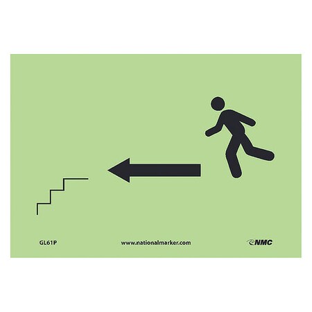 NMC GL61P 7" x 10" Fire Sign w/Legend:Stairs Left Arrow Man Graphic, PS Glow, Pack of 20 pcs
