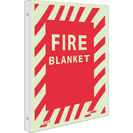 NMC GLTV19 Fire Sign, Legend "FIRE BLANKET", 9" Length x 12" Height, Glow Rigid, Red on White