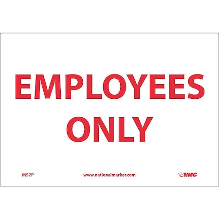 NMC M57P Exit/Entrance Sign, Legend "EMPLOYEES ONLY", 10" Length x 7" Height, Pressure Sensitive Vinyl, Red on White