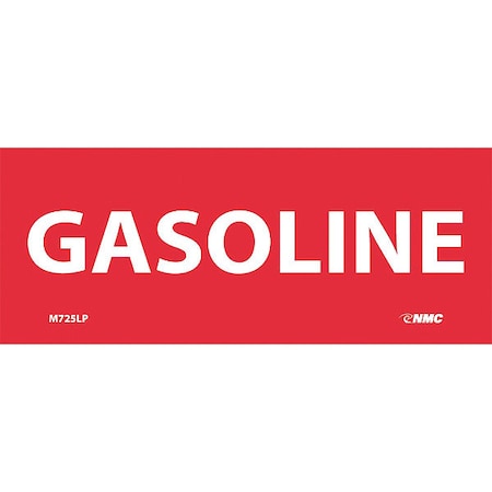 NMC M725LP Flammable/Combustible Sign, "GASOLINE", 5" Width x 2" Height, Pressure Sensitive Vinyl, White On Red