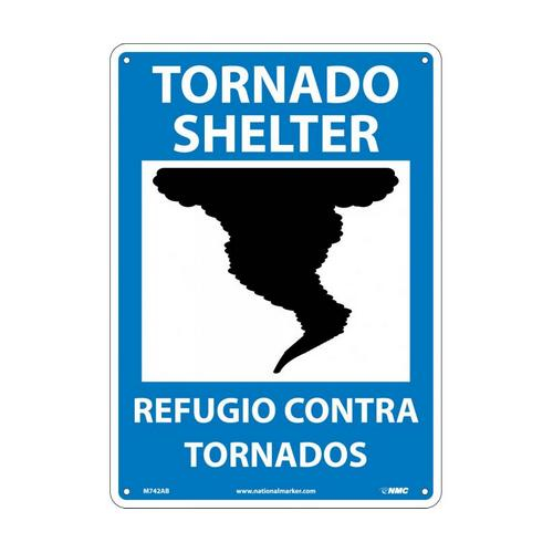 NMC M742RB, 14" x 10""Tornado Shelter" Bilingual Sign, Pack of 25 pcs