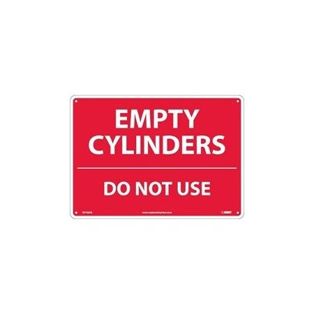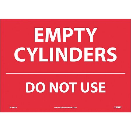 NMC M746PB Cylinder Sign, Legend "EMPTY CYLINDERS DO NOT USE", 14" Length x 10" Height, Pressure Sensitive Vinyl, White on Red