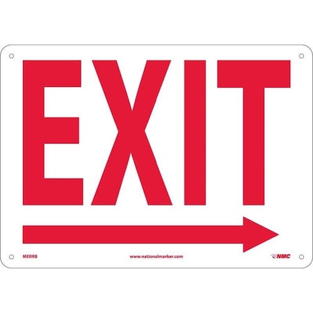 NMC MERRB Safety Sign with Right Arrow, "EXIT", 14" Width x 10" Height, Rigid Plastic, Red On White