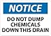 - Header "NOTICE" and Legend "DO NOT DUMP CHEMICALS DOWN THIS DRAIN"