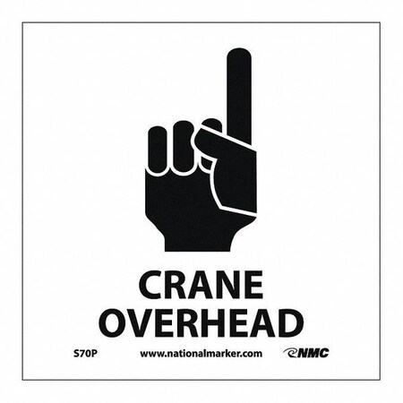 NMC S70P Graphic See Sign, Legend "CRANE OVERHEAD", 7" Length x 7" Height, Pressure Sensitive Vinyl, Black on White