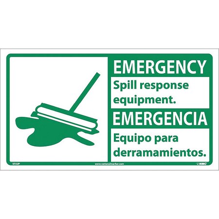 NMC SFA2P Bilingual OSHA Sign, Legend "EMERGENCY- Spill response equipment." with Graphic, 18" Length x 10" Height, Pressure Sensitive Vinyl, Green on White