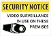 | Feature | Header "SECURITY NOTICE" and legend "VIDEO SURVEILLANCE IN USE ON THESE PREMISES" |