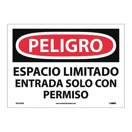 NMC SPD162PB OSHA Sign, Legend "PELIGRO ESPACIO LIMITADO ENTRADA SOLO CON PERMISO", 14" Length x 10" Height, Pressure Sensitive Vinyl, Black/Red on White