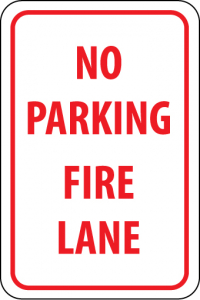 - Parking Restriction Sign: this no parking sign is often used to keep the indicated area clear of parked vehicles. This sign ensures that traffic does not block the way for vehicles or crew that attend to fire-related emergencies