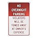 No Overnight Parking Violators Will Be Towed Sign, TM57G