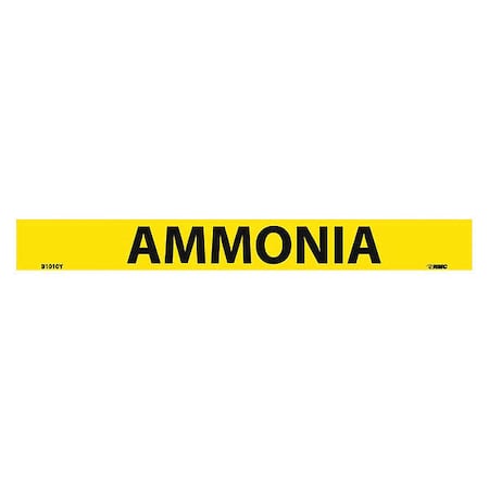 NMC B1010Y Pipemarkers Sign, Legend "Ammonia", 9" Length x 1" Height, 3/4" Letter Size, Pressure Sensitive Vinyl, Black on Yellow (Pack of 25)