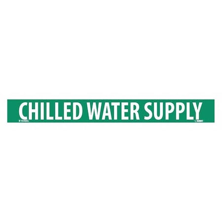 NMC B1048G Pipemarkers Sign, Legend "Chilled Water Supply", 9" Length x 1" Height, 3/4" Letter Size, Pressure Sensitive Vinyl, White on Green (Pack of 25)