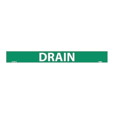 NMC B1087G Pipemarkers Sign, Legend "Drain", 9" Length x 1" Height, 3/4" Letter Size, Pressure Sensitive Vinyl, White on Green (Pack of 25)