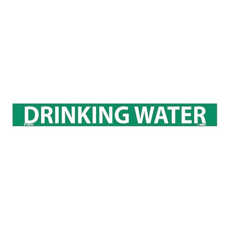 NMC B1089G Pipemarkers Sign, Legend "Drinking Water", 9" Length x 1" Height, 3/4" Letter Size, Pressure Sensitive Vinyl, White on Green (Pack of 25)