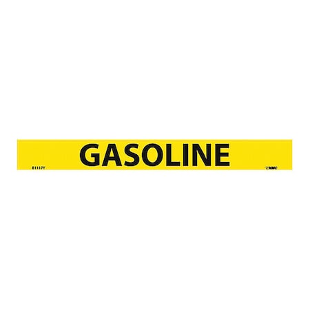 NMC B1117Y Pipemarkers Sign, Legend"Gasoline", 9" Length x 1" Height, 3/4" Letter Size, Pressure Sensitive Vinyl, Black on Yellow (Pack of 25)