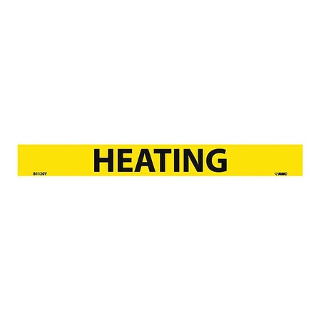 NMC B1120Y Pipemarkers Sign, Legend "Heating", 9" Length x 1" Height, 3/4" Letter Size, Pressure Sensitive Vinyl, Black on Yellow (Pack of 25)