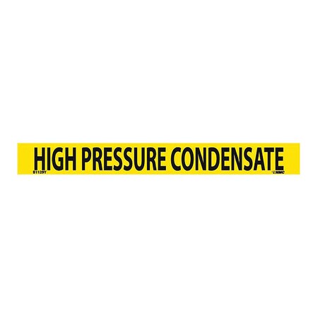 NMC B1129Y Pipemarkers Sign, Legend "HIGH Pressure CONDENSATE", 9" Length x 1" Height, 3/4" Letter Size, Pressure Sensitive Vinyl, Black on Yellow (Pack of 25)