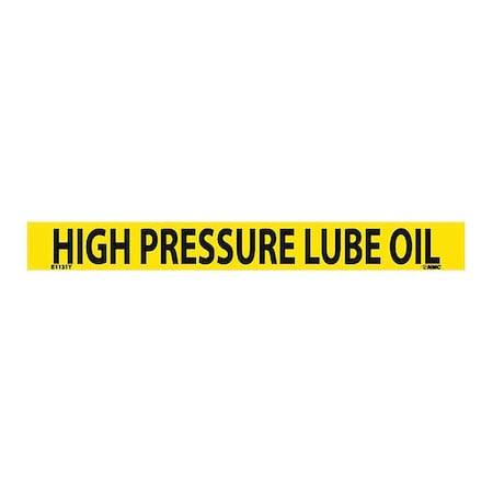 NMC B1131Y Pipemarkers Sign, Legend "HIGH Pressure LUBE Oil", 9" Length x 1" Height, 3/4" Letter Size, Pressure Sensitive Vinyl, Black on Yellow (Pack of 25)