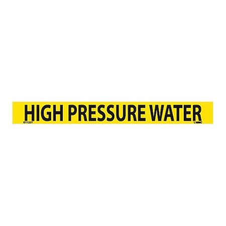 NMC B1133Y Pipemarkers Sign, Legend "HIGH Pressure Water", 9" Length x 1" Height, 3/4" Letter Size, Pressure Sensitive Vinyl, Black on Yellow (Pack of 25)
