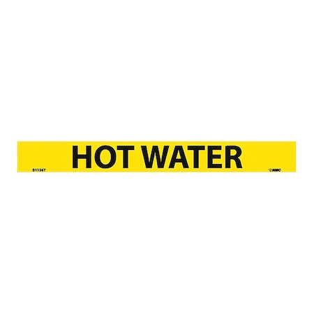 NMC B1136Y Pipemarkers Sign, Legend "HOT Water", 9" Length x 1" Height, 3/4" Letter Size, Pressure Sensitive Vinyl, Black on Yellow (Pack of 25)