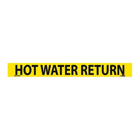 NMC B1137Y Pipemarkers Sign, Legend"HOT Water Return", 9" Length x 1" Height, 3/4" Letter Size, Pressure Sensitive Vinyl, Black on Yellow (Pack of 25)